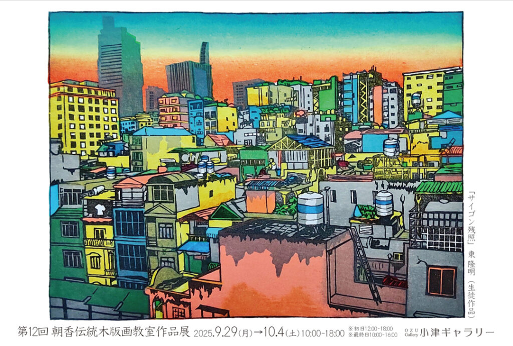 2025年9月29日より日本橋の小津ギャラリーで朝香伝統木版画教室の作品展が開催いたします。年齢も経験もさまざまな生徒さんたちが、丁寧に時間をかけて、木版画作品をつくりあげました。想いを込めて完成した作品には、その人らしさがそっと息づいています... -
